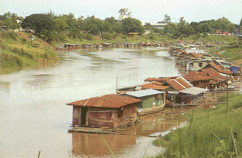 Houseboats can be seen on the banks of the river where hundreds of people live and work.